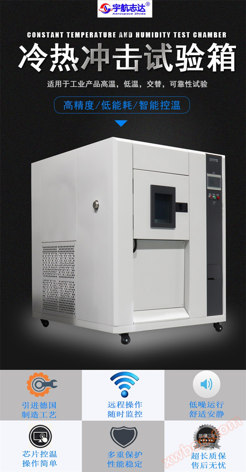 2. The cold and hot shock chamber is divided into three parts: high temperature chamber, low temperature chamber, and testing chamber. It adopts a unique heat insulation structure and thermal storage effect. During the test, the test object is completely stationary, and the cold and hot air paths are switched to introduce the cold and hot temperatures into the testing area to achieve the purpose of cold and hot shock testing.