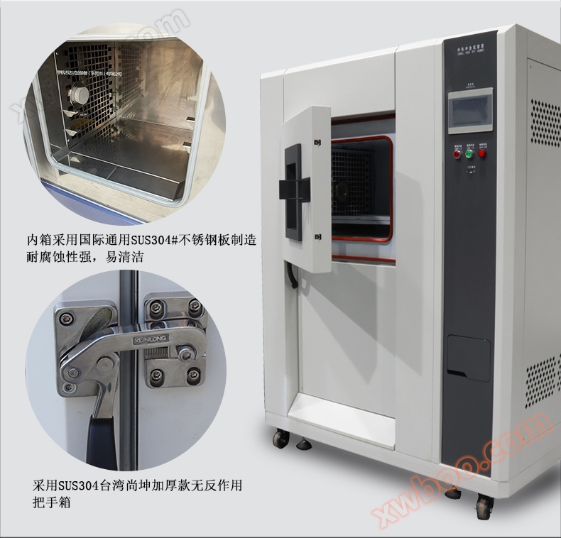 3. Using measuring devices, what,? The controller adopts a large color LCD human-machine touch dialogue LCD human-machine interface controller, which is easy to operate,? Easy to learn, stable and reliable. Display complete system operation status, execution, and program setting curves in both Chinese and English. With 96 independent test specifications, the impact time is 999 hours and 59 minutes, and the cycle time can be set from 1 to 999 times. It can achieve automatic operation of the refrigeration machine, reduce the workload of operators, and automatically start and stop working at any time.