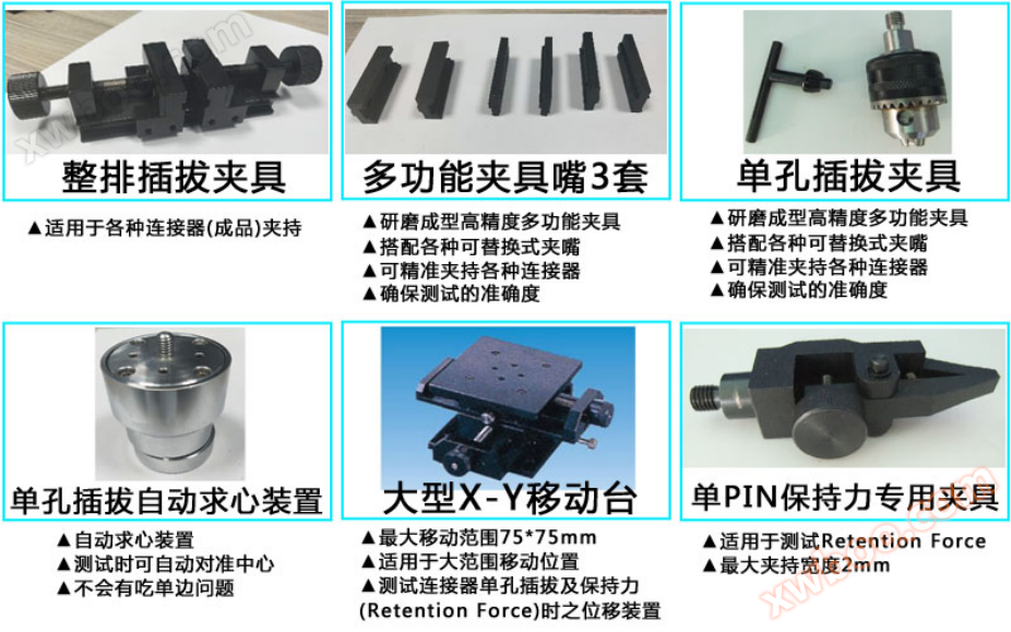Standard fixtures:It can solve various fixture problems for connector testing, and the male and female connectors can automatically align during testing without any one-sided issues.