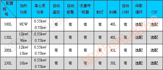 2、 Parameters of single tank fresh milk pasteurizer